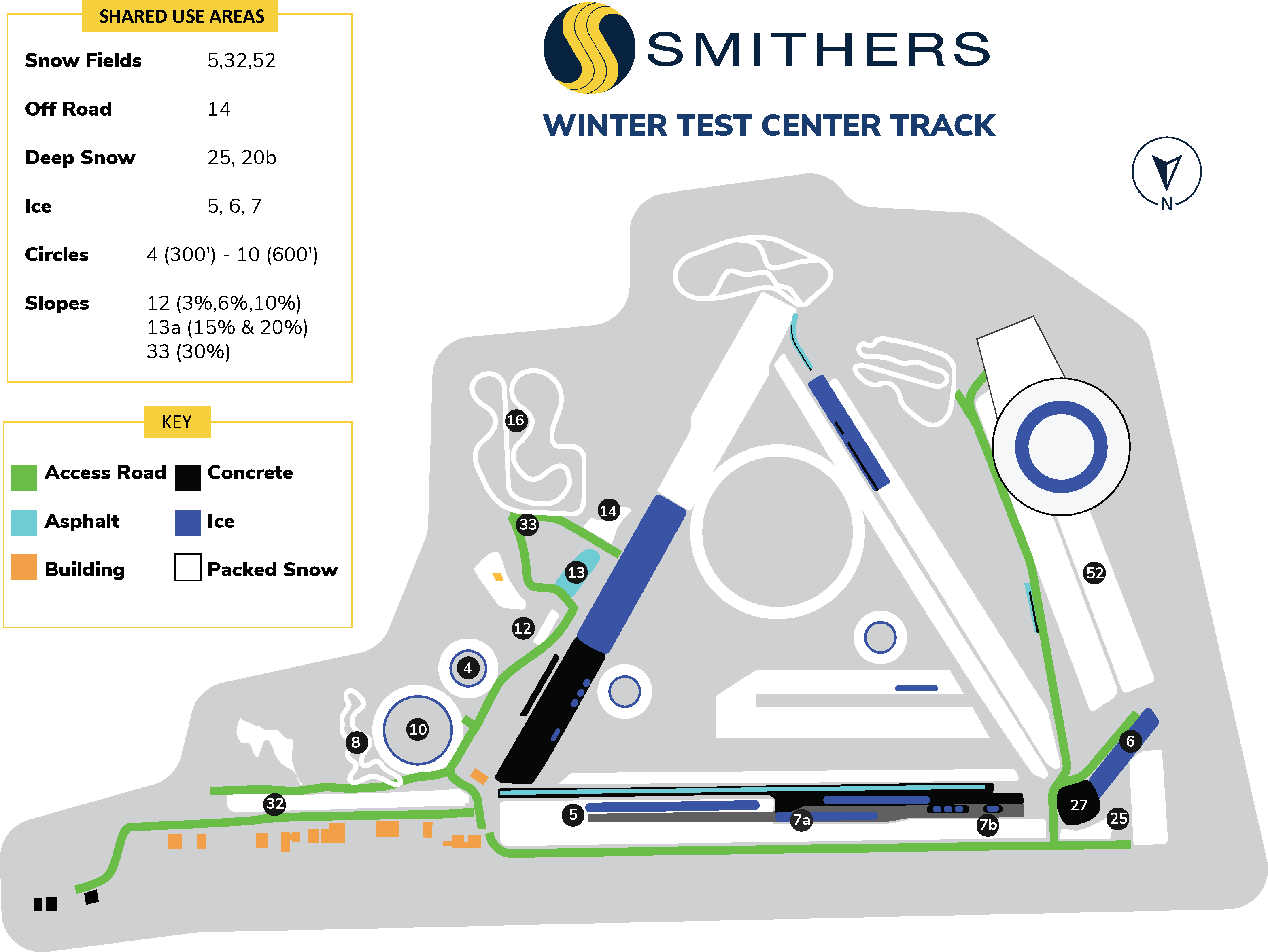 • Packed snow handling and test lanes